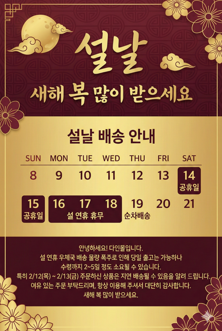 - ㆍ모니터 해상도의 차이로 인해 색상이나 이미지가 실제와 달라, 고객이 단순 변심으로 교환/반품을 무료로 요청하는 경우