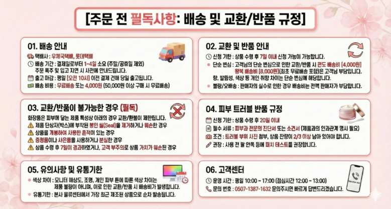 - ㆍ교환/반품에 관한 일반적인 사항은 판매자가 제시사항보다 관계법령이 우선합니다.