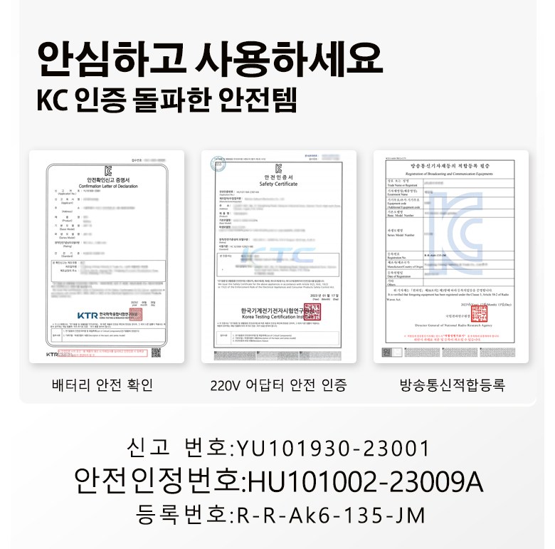 | 품명 및 모델명 | 상품 상세페이지 참조 | 인증/허가 사항 | 본품 : R-R-Ak6-135-JM / 전지 : XU101930-23001 / 충전기 : XU101002-23009A |