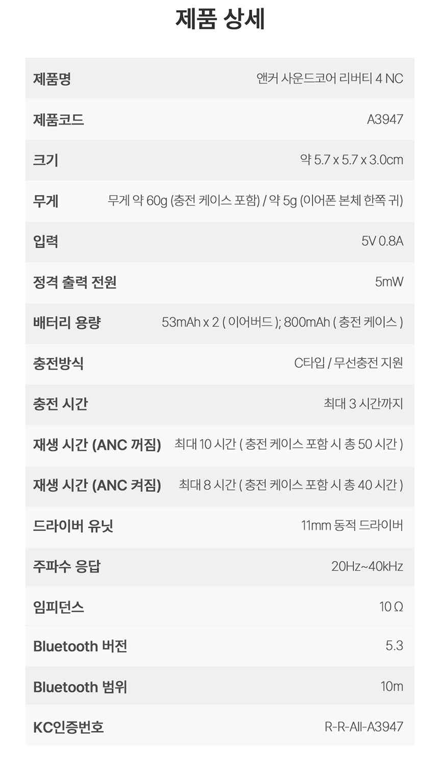 | 품명 및 모델명 | 앤커 사운드코어 리버티4 NC,A3947 | KC 인증정보 | 본품 : R-R-AIl-A3947 , 전지 : YU101156-22002 |