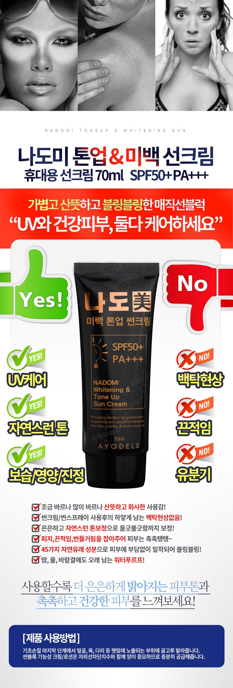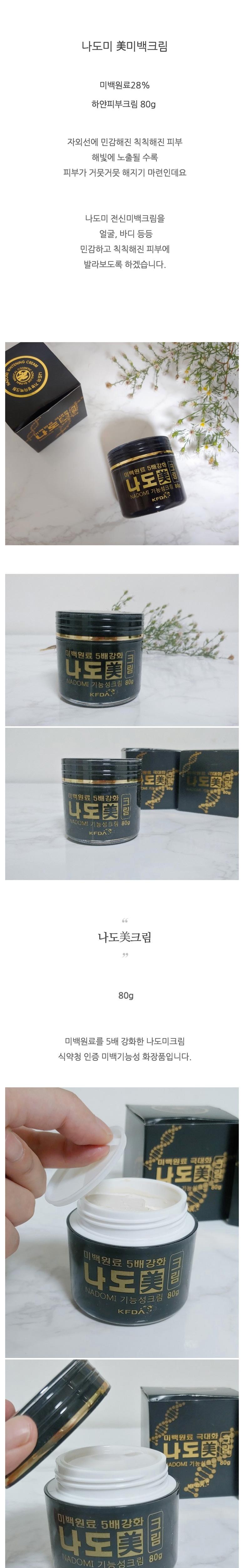 | 용량(중량) | 나도미 미백원료28% 하얀피부 동안크림 80g + New 나도미 톤업미백썬크림 70g / 총2개 | 제품 주요 사양 | 모든피부용/ 순한 자연성분 / 미백성분 5배강화 |
