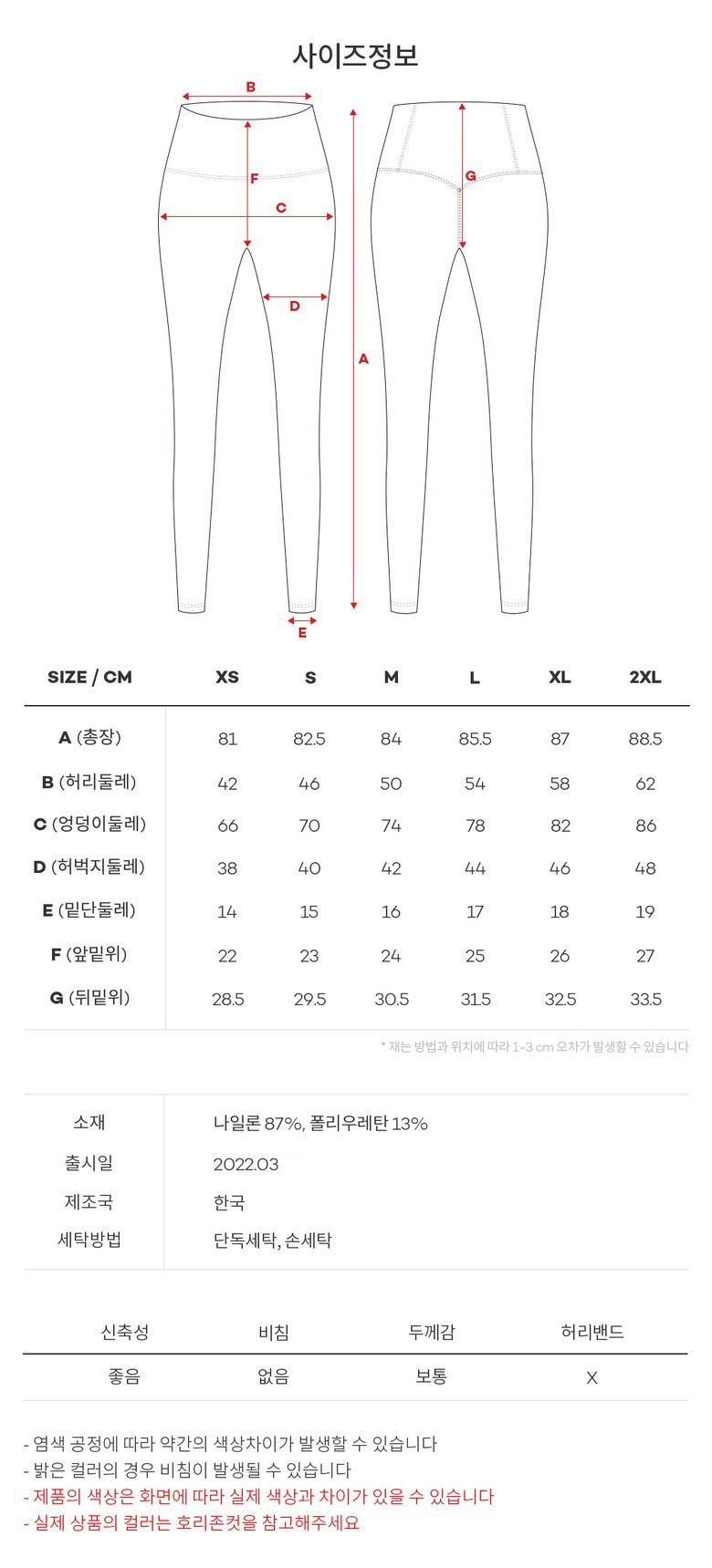 - 하의 길이: 9부길이