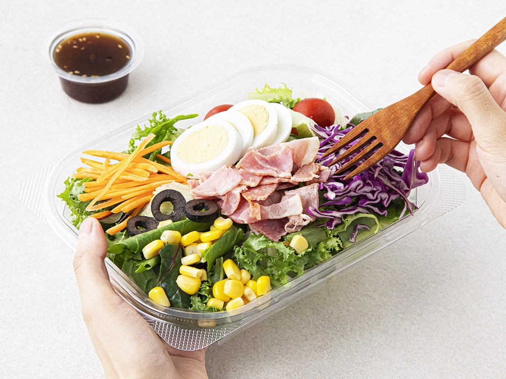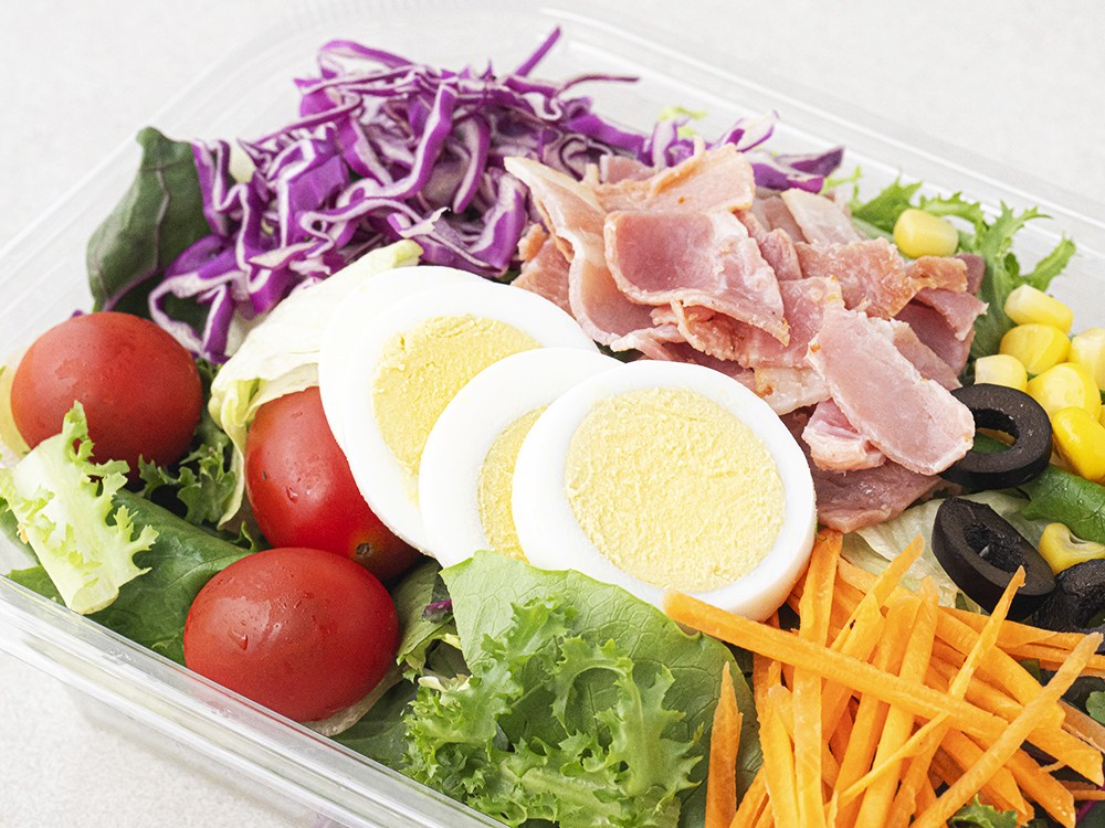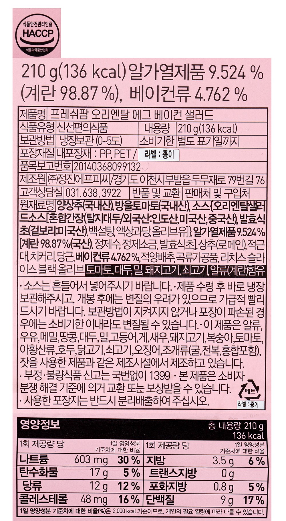 고소한 감칠맛이 매력적인 에그 베이컨 샐러드예요. 채소에서 배어 나오는 산뜻하면서 쌉싸름한 풍미가 일품이죠. 갖은 재료가 선사하는 쫄깃하고 아삭아삭한 식감을 함께 즐기실 수 있답니다. 먹기 좋게 손질되어 있어 간편하게 즐기실 수 있어요. 동봉된 상큼한 소스를 뿌려 드셔보세요.