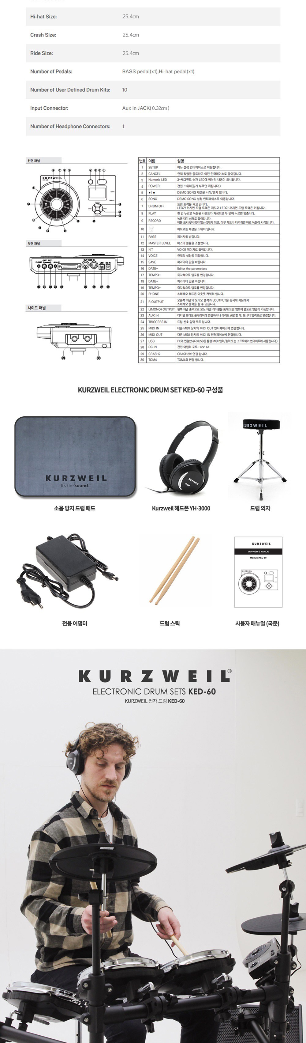 | 품명 및 모델명 | 커즈와일 전자 드럼 / KED-60 | 크기 | 컨텐츠 참조 |