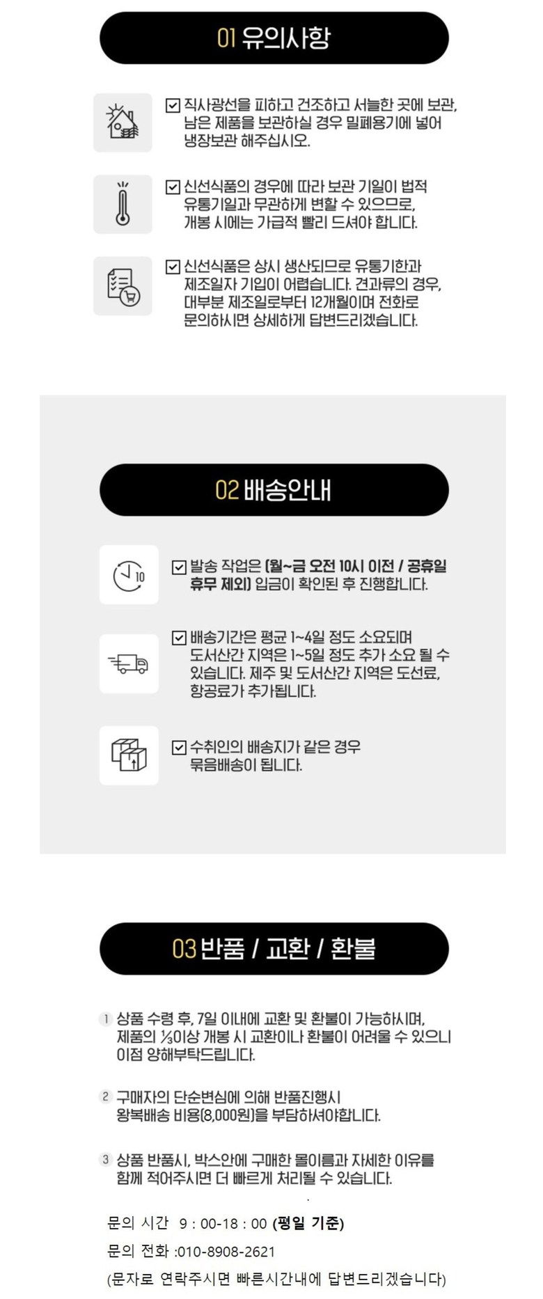 - ㆍ교환/반품에 관한 일반적인 사항은 판매자가 제시사항보다 관계법령이 우선합니다.
