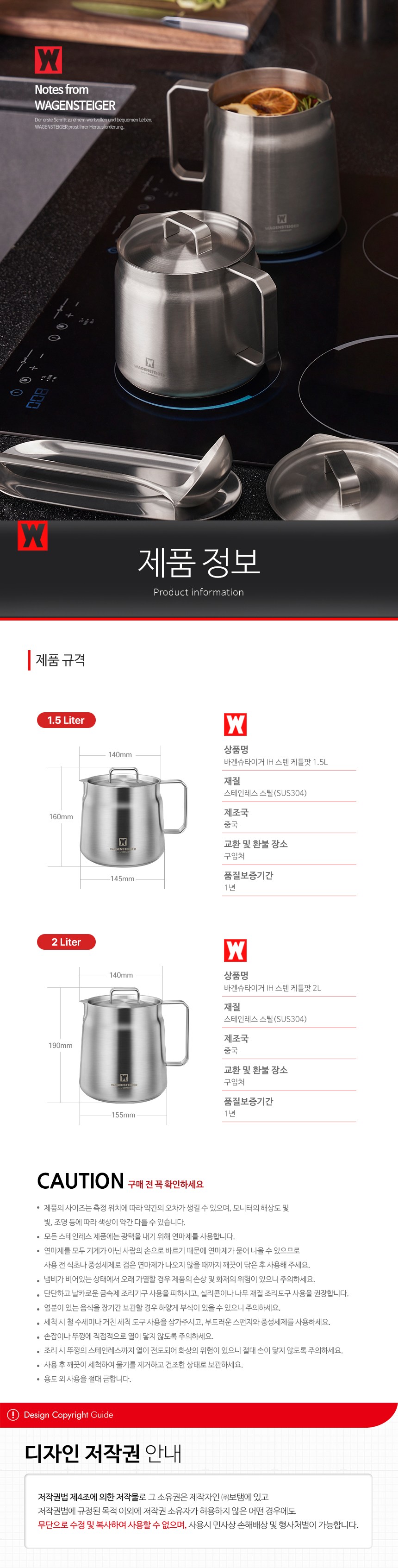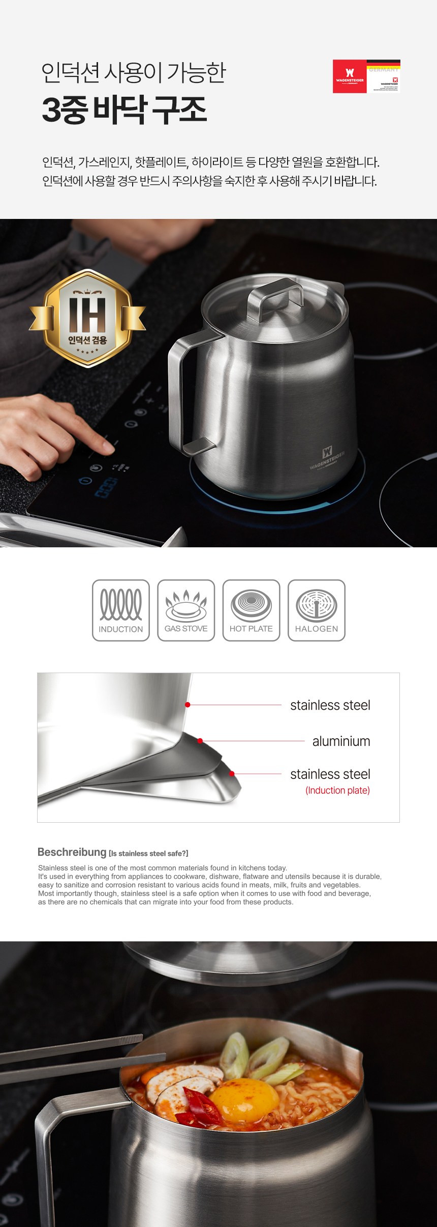 | 품명 및 모델명 | 바겐슈타이거 인덕션 올스텐304 라면냄비 케틀팟 | 재질 | 컨텐츠참조 |