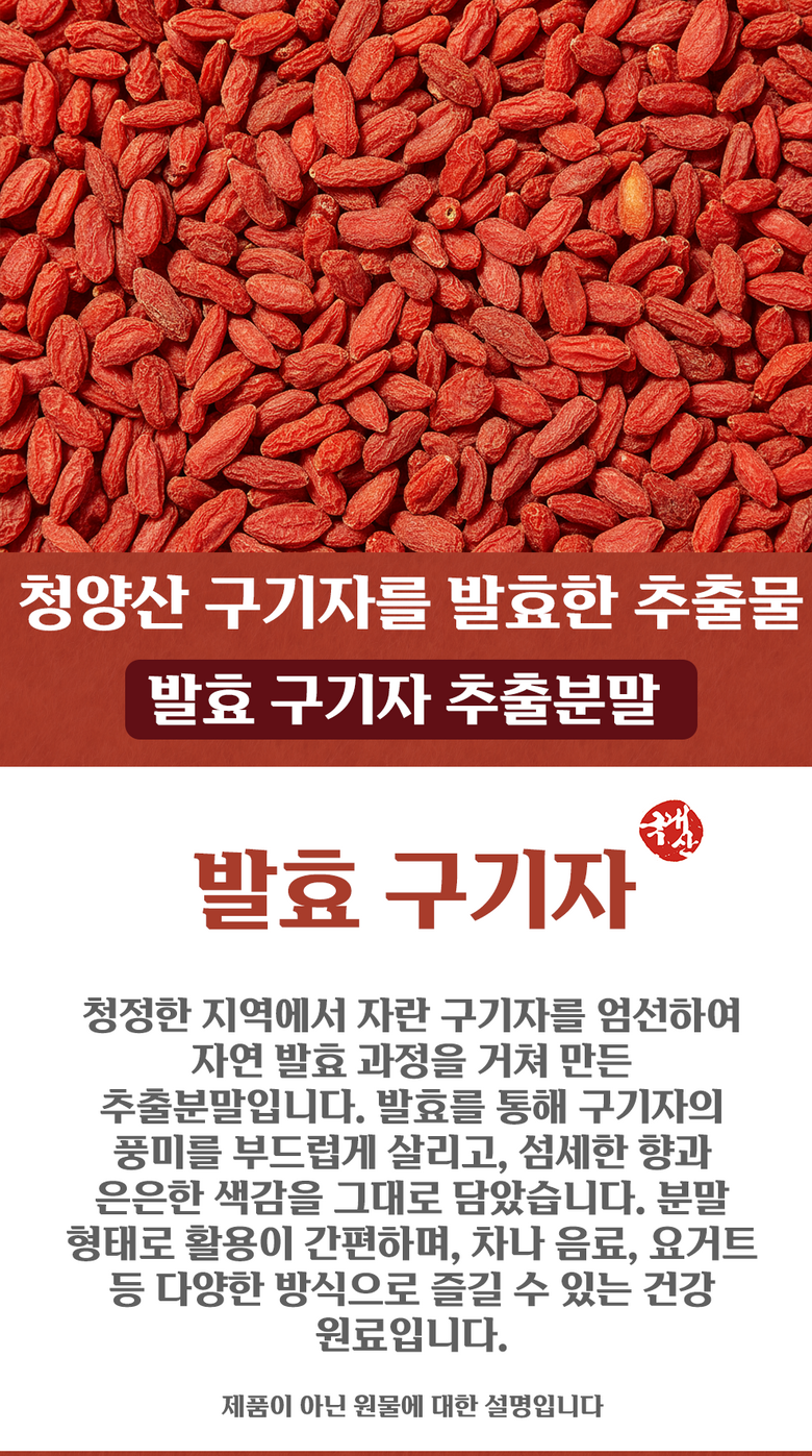 | 제품명 | 발효 구기자 추출분말 | 식품의 유형 | 과.채가공품 |