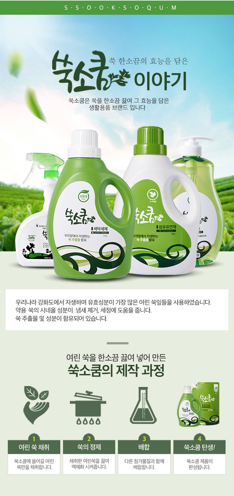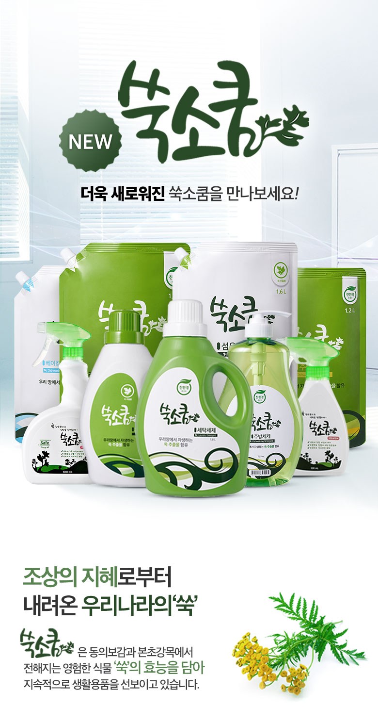 | 품목 및 제품명 | 세탁세제 / 쑥소쿰 손빨래 전용세제 찌든 빨래용 | 용도(표백제의 경우 계열을 함께표시) 및 제형 | 섬유용 / 비분사형-액체형 |