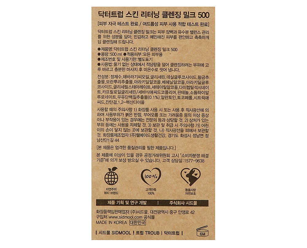 | 용량(중량) | 500ml | 제품 주요 사양 | 모든피부용 |