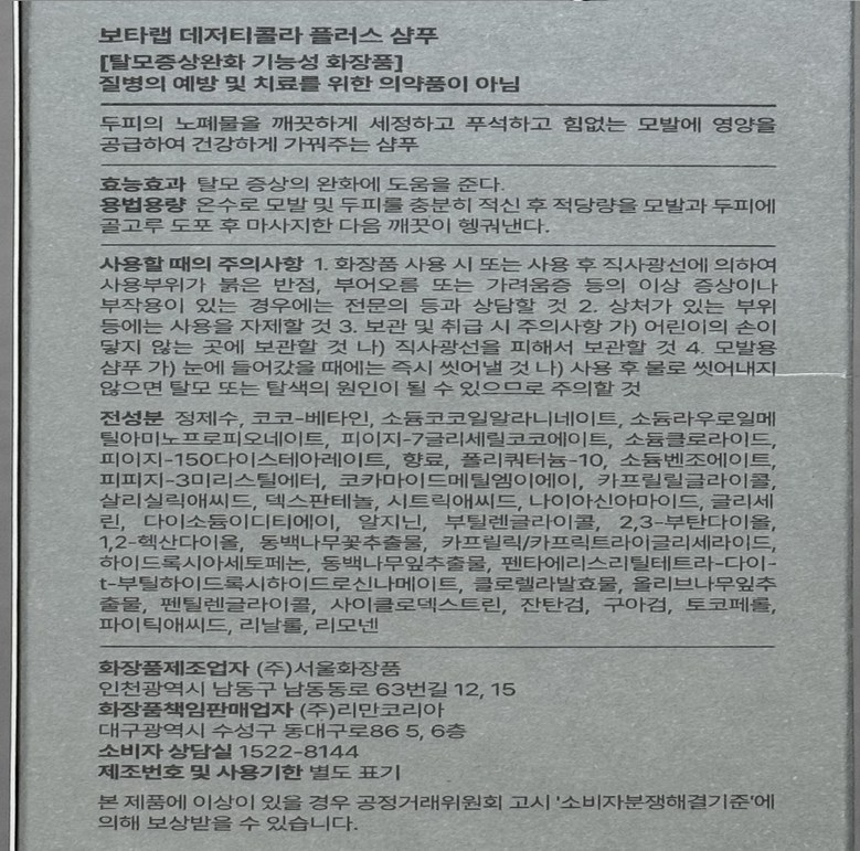 | 화장품제조업자, 화장품책임판매업자 및 맞춤형화장품판매업자 | 상품 상세페이지 참조 | 제조국 | 상품 상세페이지 참조 |