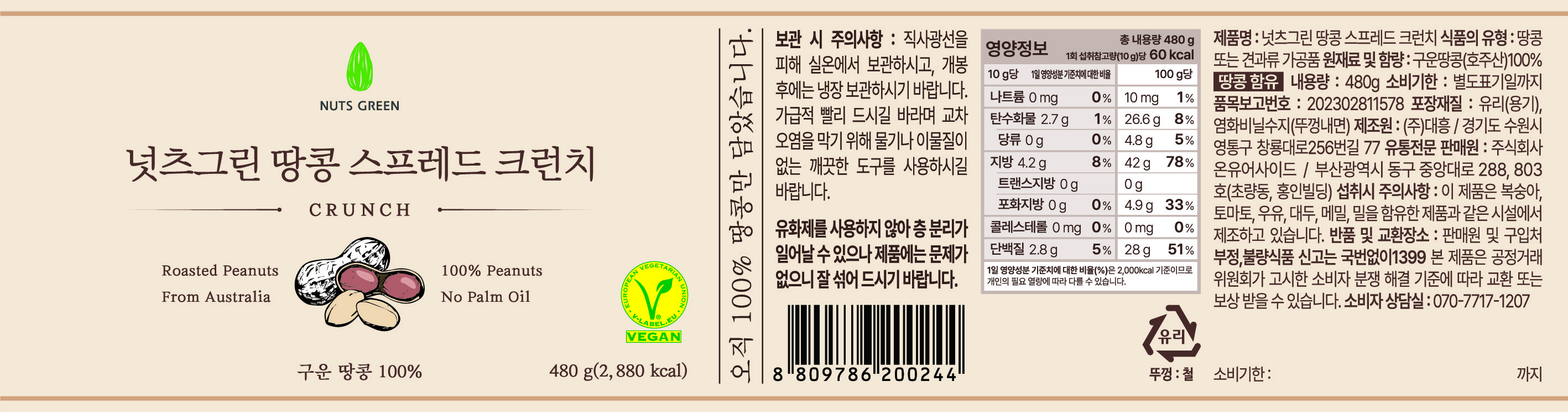 | 포장단위별 내용물의 용량(중량), 수량 | 480g x 3개 | 원재료명 및 함량 | 컨텐츠 참조 |