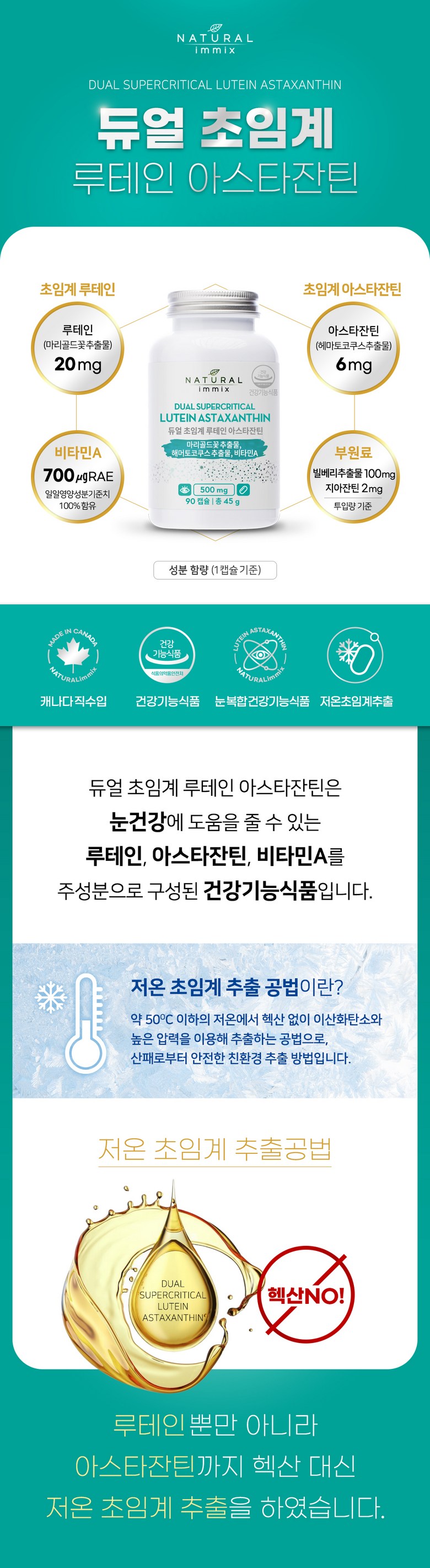 | 제품명 | DUAL SUPERCRITICAL LUTEINASTAXANTHIN | 제조업소의 명칭과 소재지 | 한국내추럴이믹스㈜, Natural immix health Limited/ Canada |