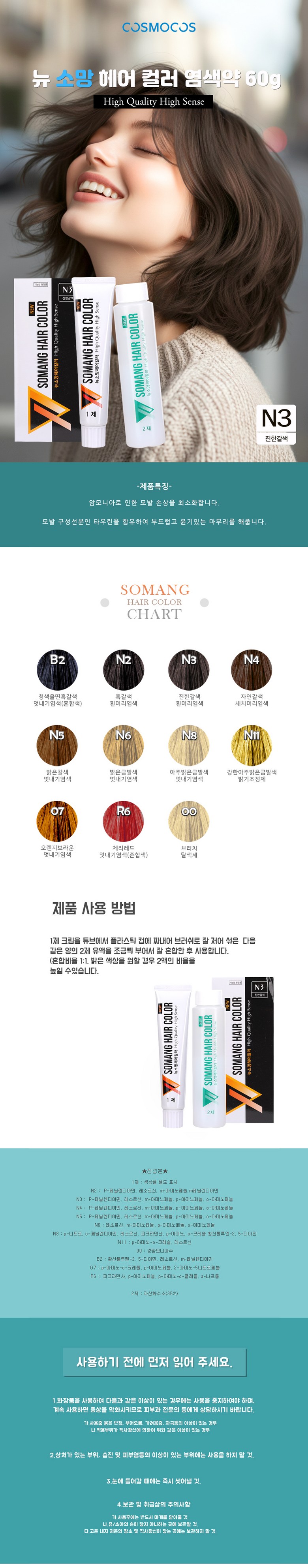 소망 헤어 컬러 새치 멋내기 염색약 염모제, N3 진한갈색, 1개