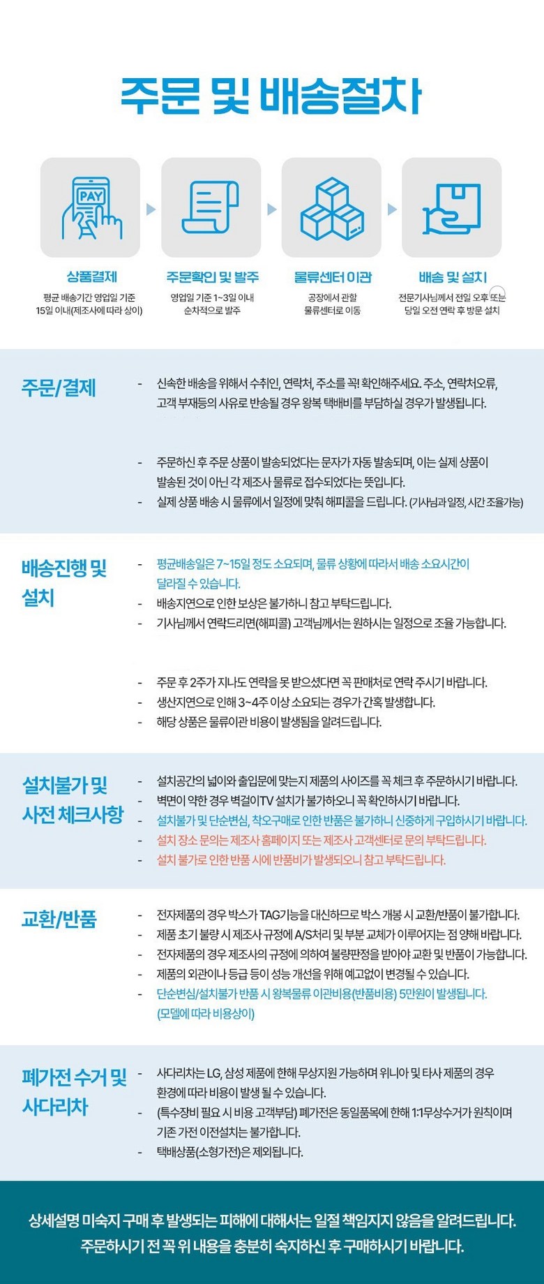 - ㆍ교환/반품에 관한 일반적인 사항은 판매자가 제시사항보다 관계법령이 우선합니다.