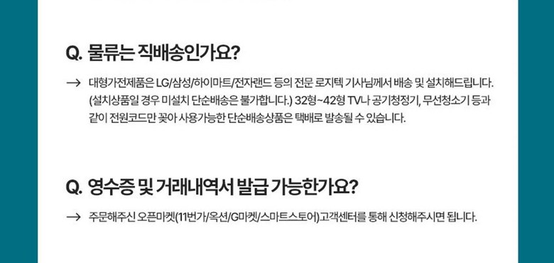 | 배송방법 | 업체직송 | 배송비 | 무료배송 · 도서산간 추가 배송비 - 제주 지역: 5,000원 - 도서산간 지역: 5,000원 |