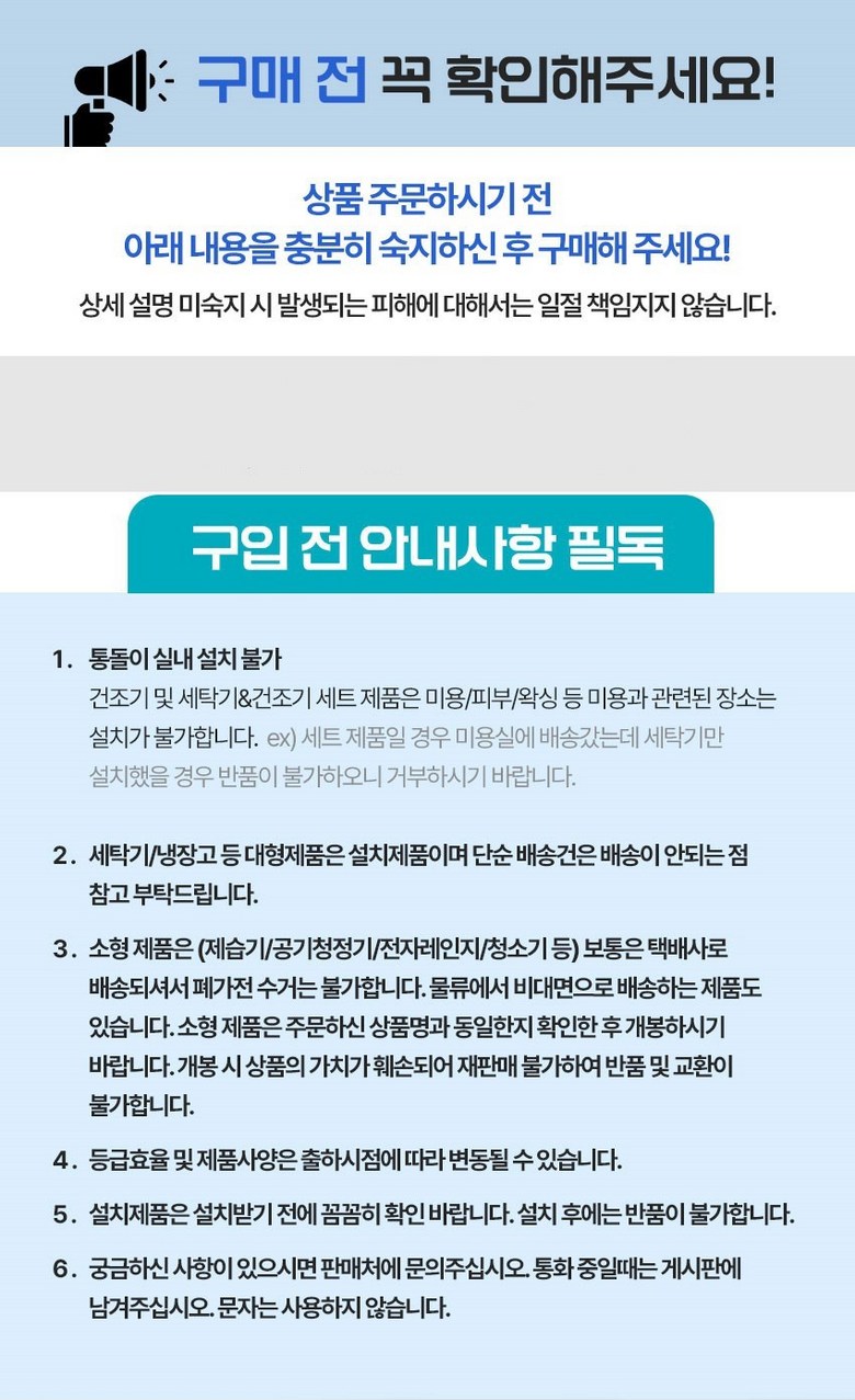 다만, 판매자의 제시사항이 관계법령보다 소비자에게 유리한 경우에는 판매자 제시사항이 적용됩니다.