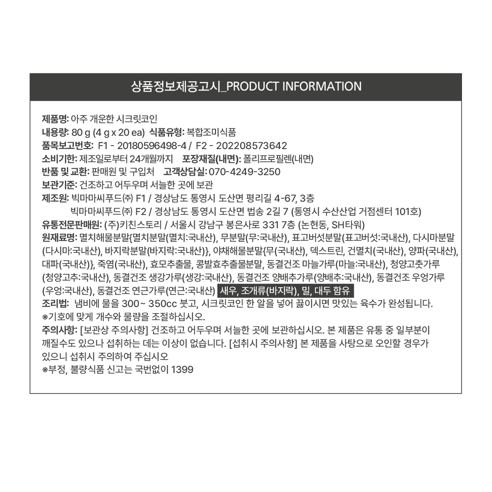 - 조미료 형태: 고체