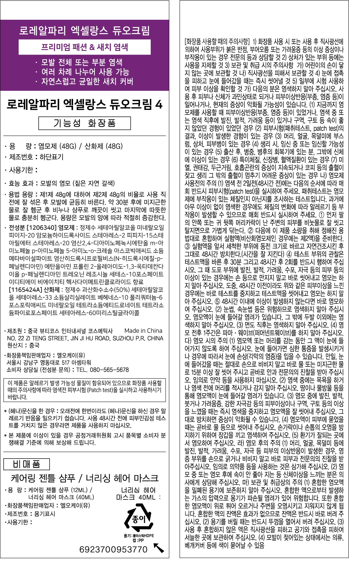 | 용량(중량) | 컨텐츠 참조 | 제품 주요 사양 | 모든 모발용 |