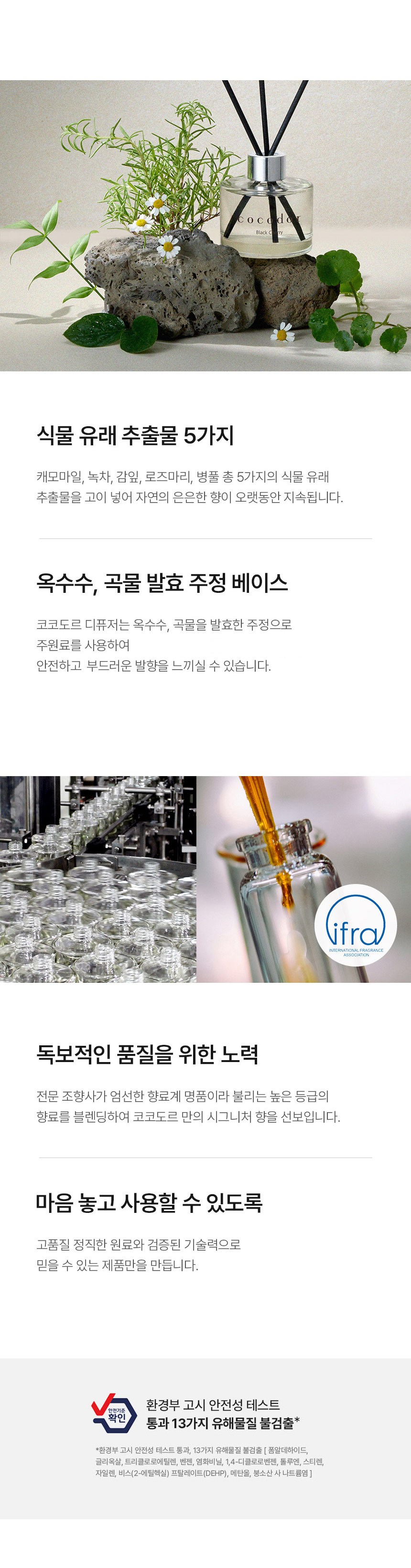 | 품목 및 제품명 | 방향제/퍼퓸디퓨저_블루밍데이 | 용도(표백제의 경우 계열을 함께표시) 및 제형 | 일반용-실내공간용/비분사형-액체형 |