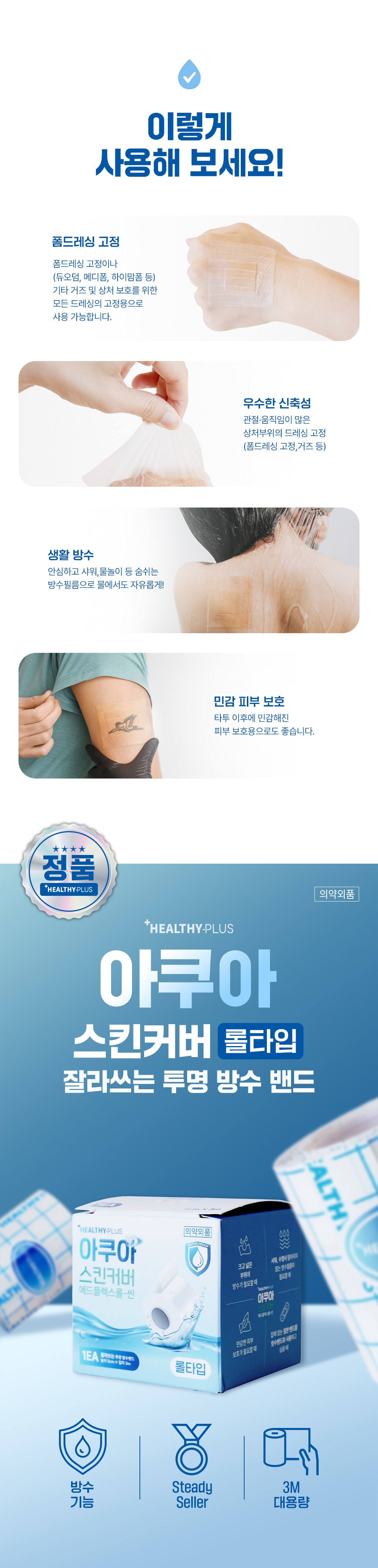 | 품명 및 모델명 | 리뉴얼 전: 슈퍼픽스아쿠아(SUPER FIX AQUA)(플라스틱필름반창고) / 리뉴얼 후: 에드플렉스롤-씬 | 인증/허가 사항 | 의약외품 |