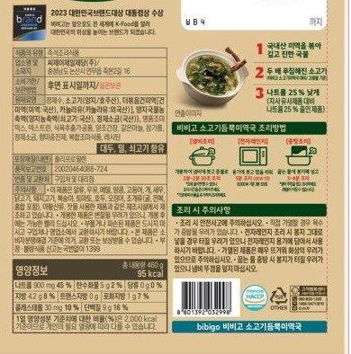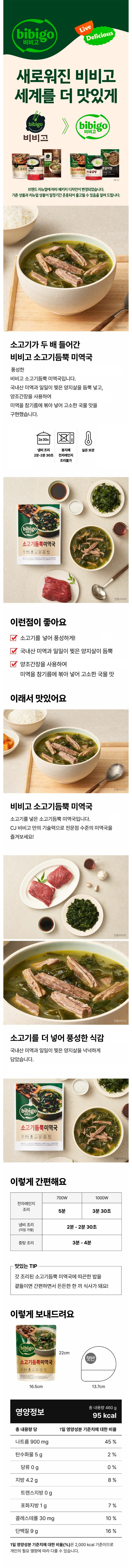 | 제품명 | bibigo 비비고 소고기듬뿍미역국 | 식품의 유형 | 컨텐츠 참조 |