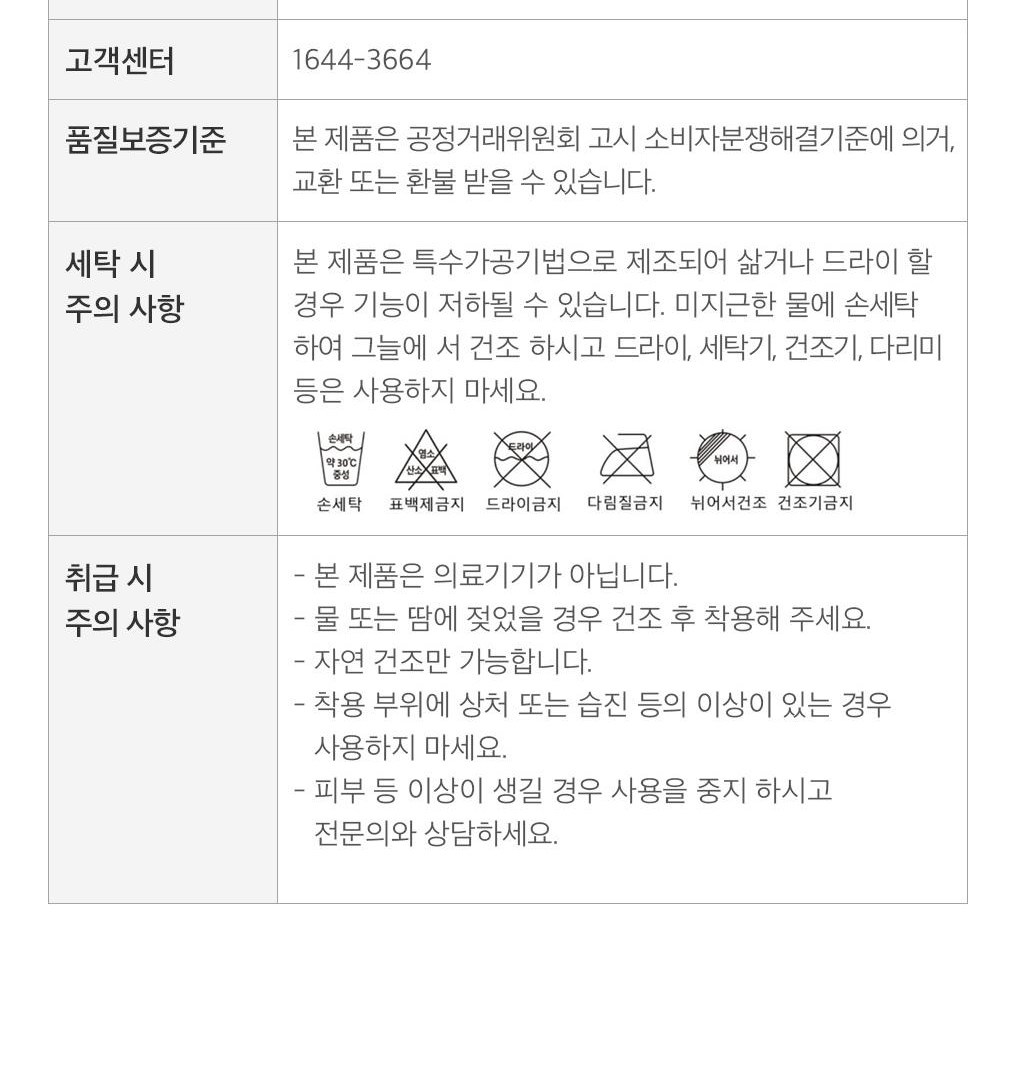 | 제조국 | 중국 | 세탁방법 및 취급시 주의사항 | 컨텐츠 참조 |