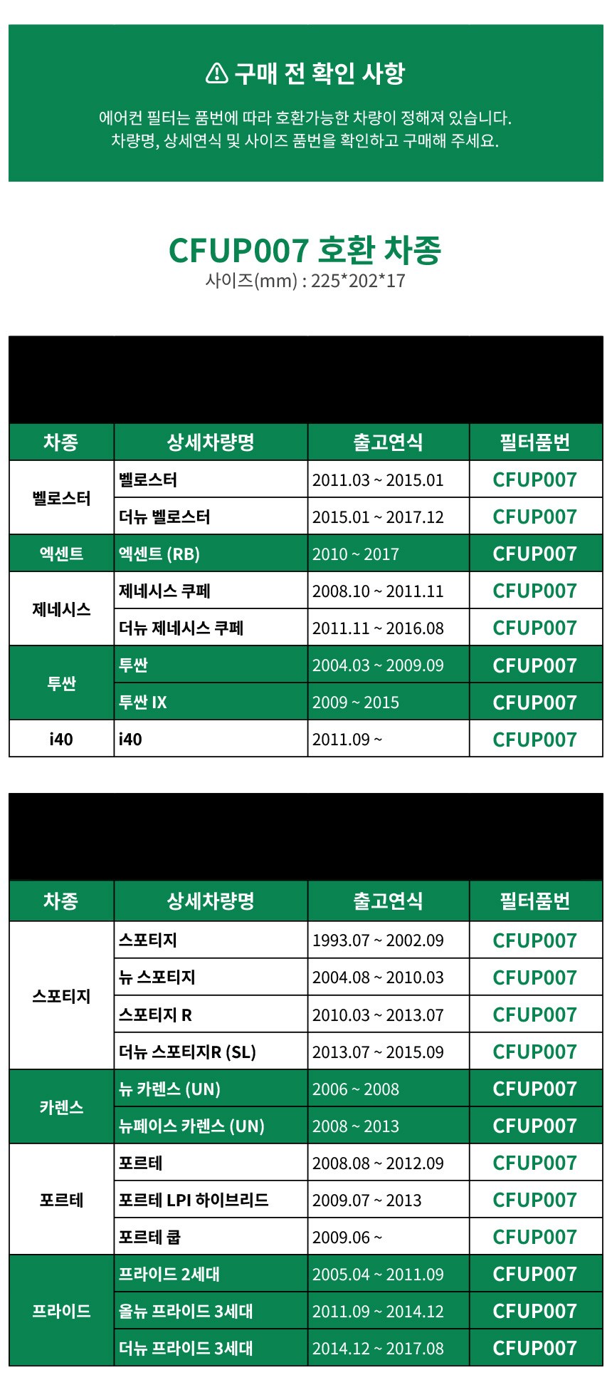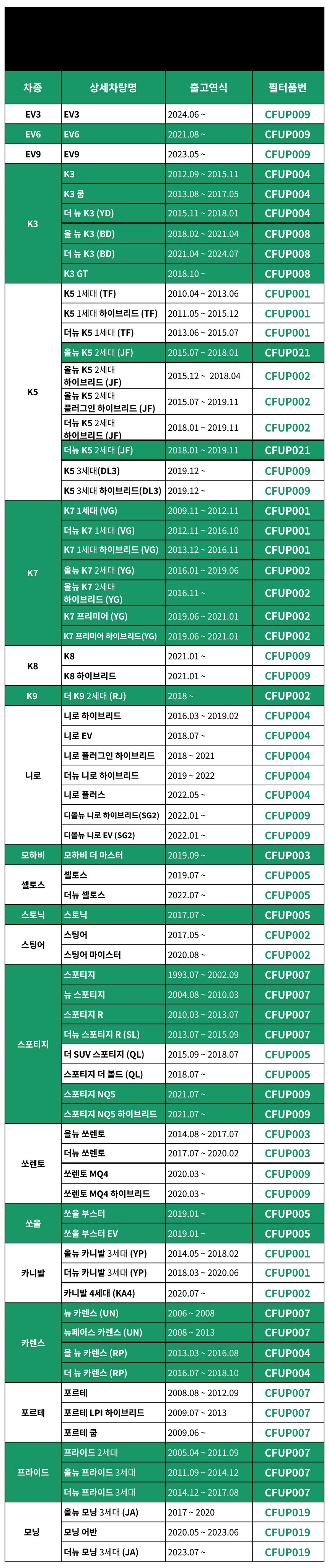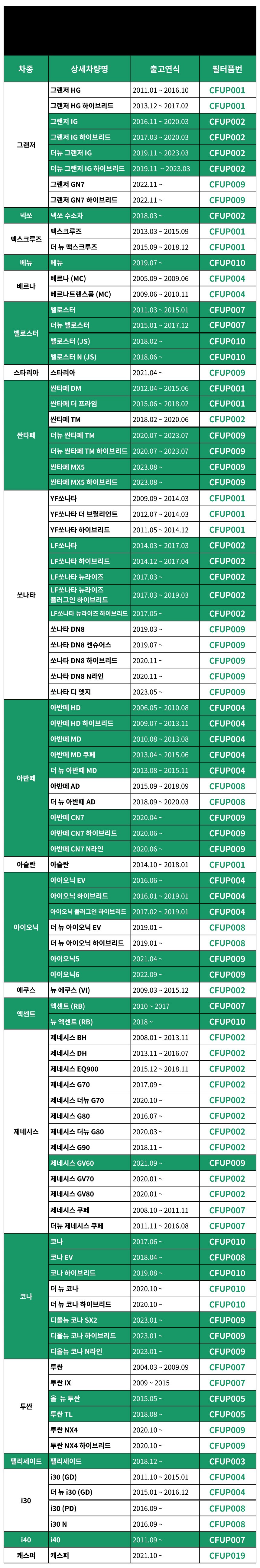 | 품명 및 모델명 | 자동차 에어컨 필터 | 동일모델 출시년월 | 업체 미제공 |