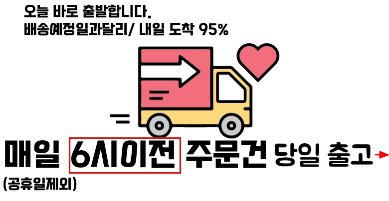 | 배송기간 | ㆍ도서산간 지역 등은 배송에 3-5일이 더 소요될 수 있습니다. - 천재지변, 물량 수급 변동 등 예외적인 사유 발생 시, 다소 지연될 수 있는 점 양해 부탁드립니다. | ||