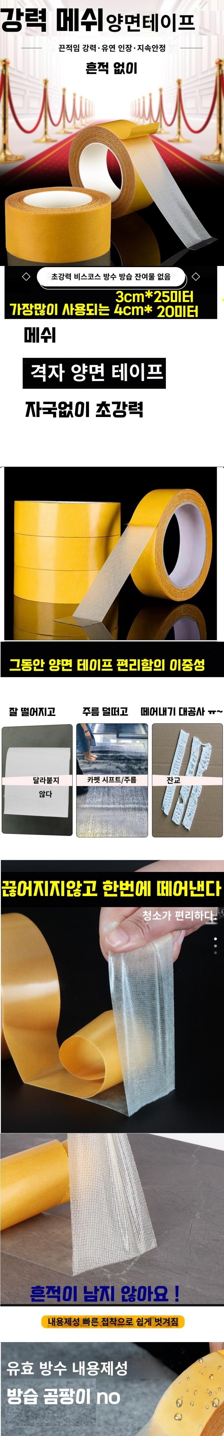 | 품명 및 모델명 | 각 20미터 메쉬양면테이프 | 인증/허가 사항 | 상품 상세페이지 참조 |