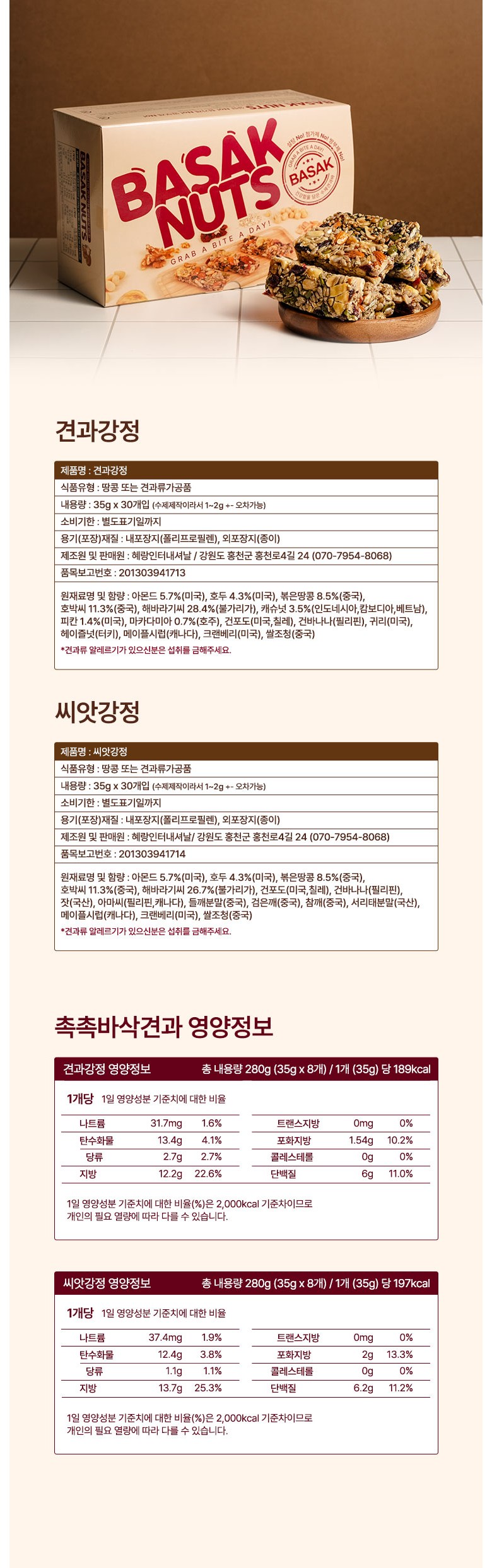 | 제품명 | 상품 상세페이지 참조 | 식품의 유형 | 기타 견과류 가공품 |
