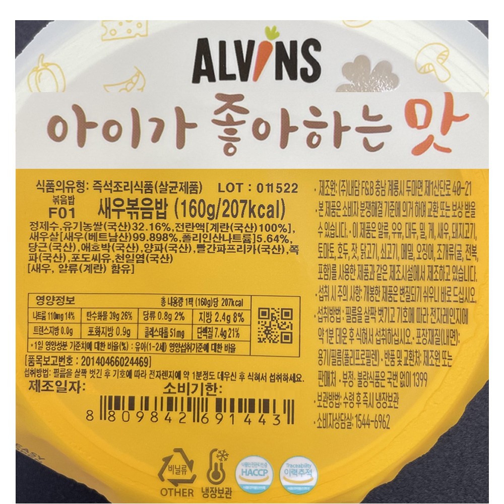 | 제품명 | 새우볶음밥 | 식품의 유형 | 컨텐츠 참조 |