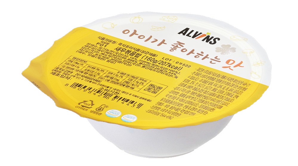 담백하고 고소한 새우볶음밥이에요. 새우는 탱글탱글, 당근과 양파는 아삭아삭하게 씹히며 먹는 재미를 선사하지요. 원물감을 간직한 각종 재료들이 조화롭게 어우러졌답니다. 전자레인지로 손쉽게 조리해 소중한 우리 아이의 식사시간을 함께해보세요.
