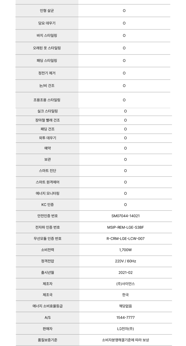 | 정격전압, 소비전력 | 상품 상세페이지 참조 | 에너지소비효율등급 | 상품 상세페이지 참조 |