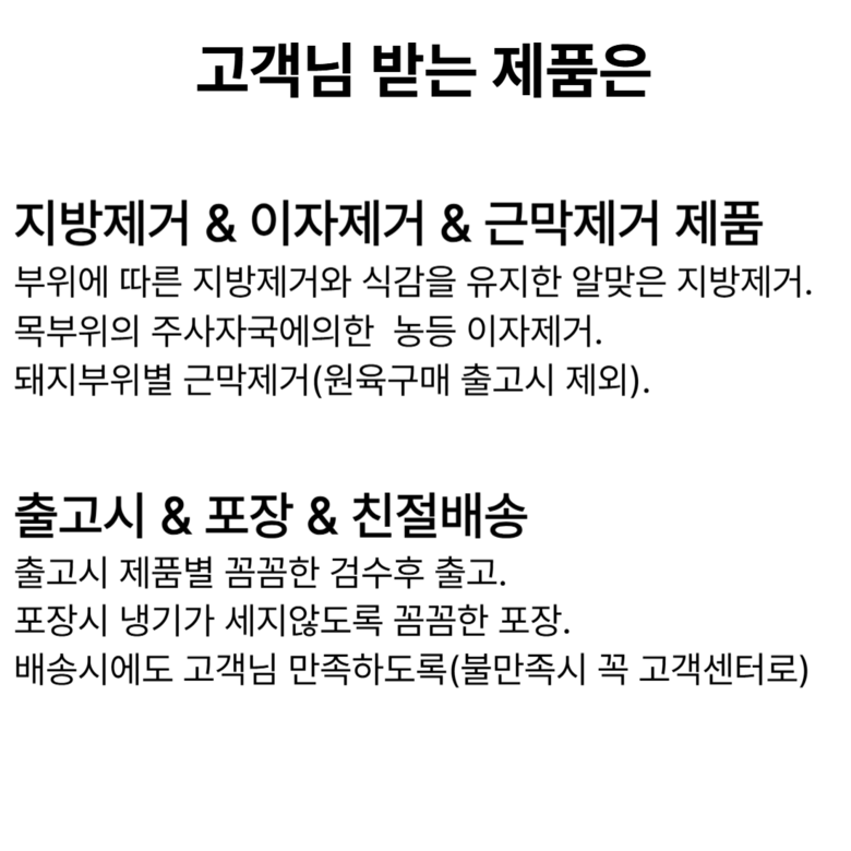 | 배송방법 | 신선/냉장/냉동 | 배송비 | 무료배송 · 도서산간 추가 배송비 - 제주 지역: 3,000원 - 도서산간 지역: 5,000원 |