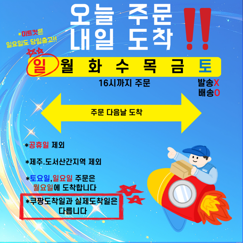 - ㆍ모니터 해상도의 차이로 인해 색상이나 이미지가 실제와 달라, 고객이 단순 변심으로 교환/반품을 무료로 요청하는 경우