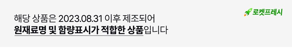 | 교환/반품 신청 기준일 | ㆍ단순변심에 의한 로켓배송 상품의 교환/반품은 제품 수령 후 30일 이내까지, 교환/반품 제한사항에 해당하지 않는 경우에만 가능 ※ 로켓프레시 상품의 경우 배송시작 후에는 취소가 불가하며, 배송완료 후 반품을 진행하실 수 있습니다. 단, 신선/냉장/냉동 상품의 단순변심의 경우 재판매가 불가한 상품의 특성 상 단순변심에 의한 반품이 제한됩니다. ㆍ상품의 내용이 표시·광고의 내용과 다른 경우에는 상품을 수령한 날부터 3개월 이내, 그 사실을 안 날 또는 알 수 있었던 날부터 |