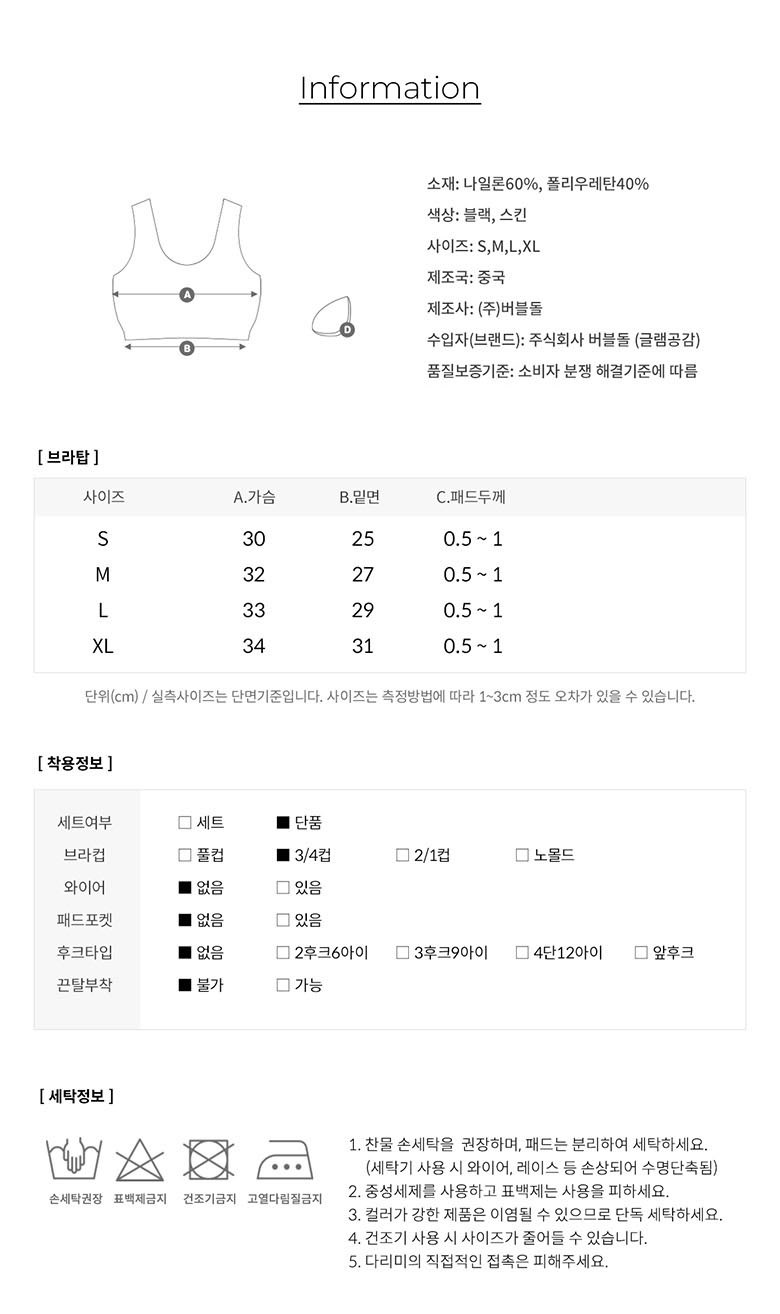 | 제조국 | 중국 | 세탁방법 및 취급시 주의사항 | 컨텐츠 참조 |