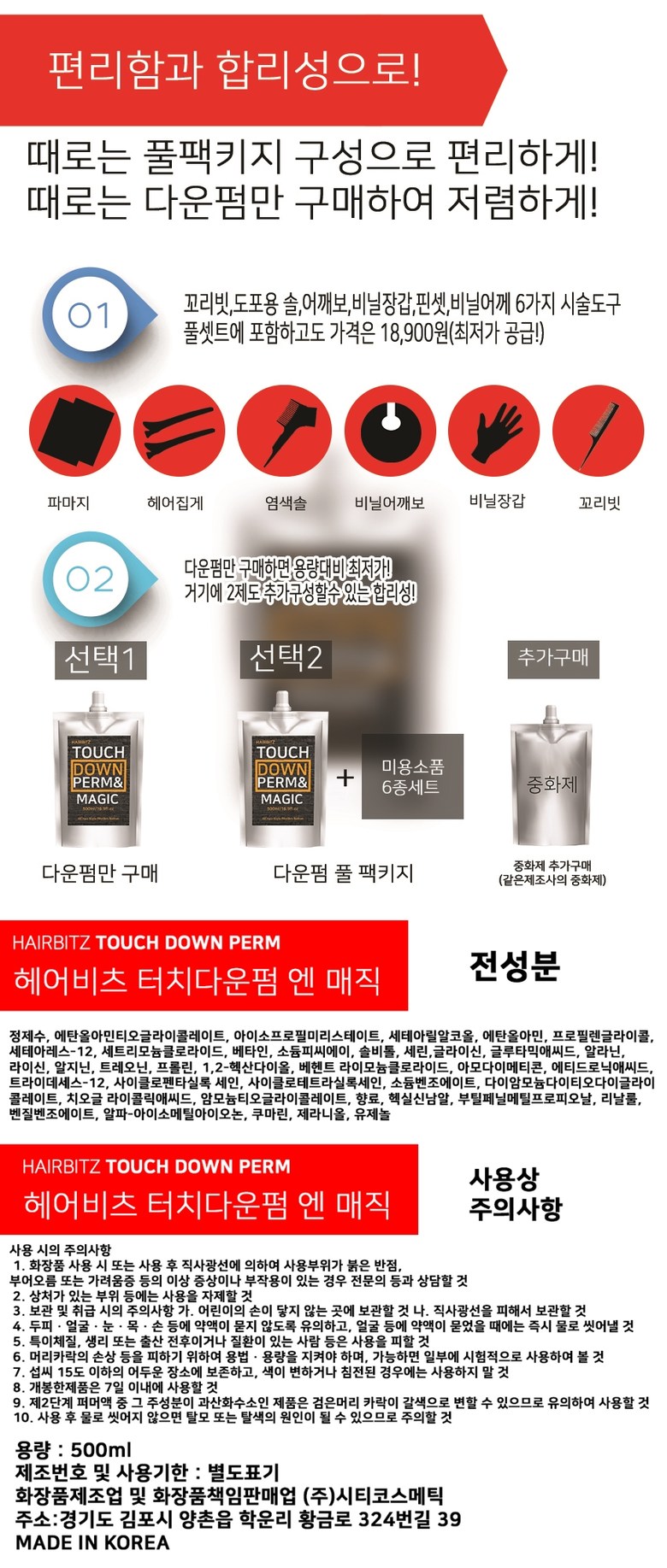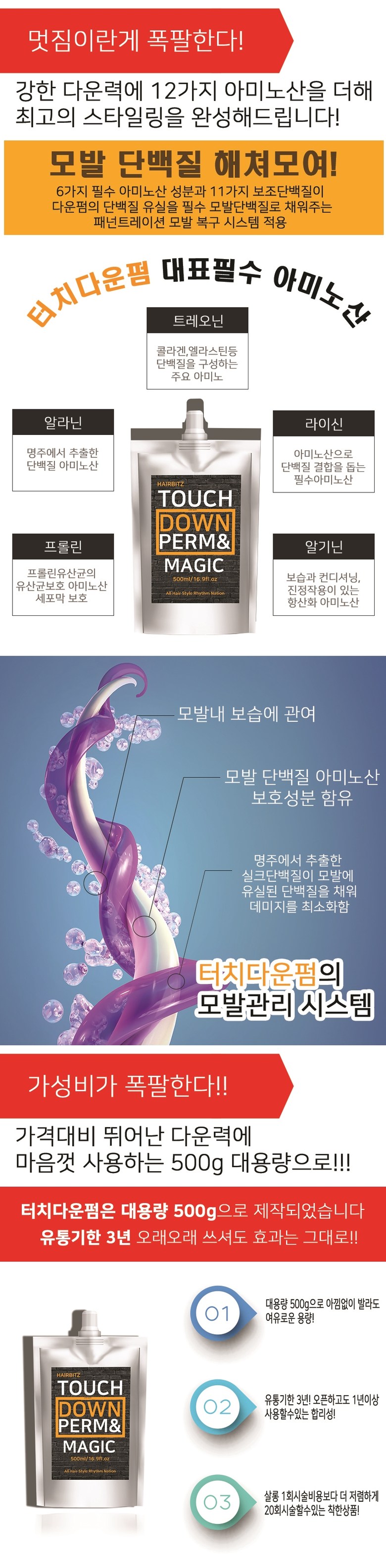 헤어비츠 다운펌 엔 매직 남자 셀프 다운펌약 500ml