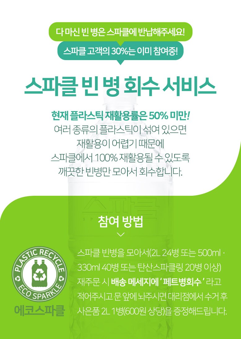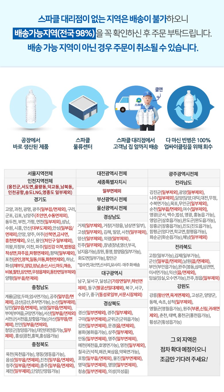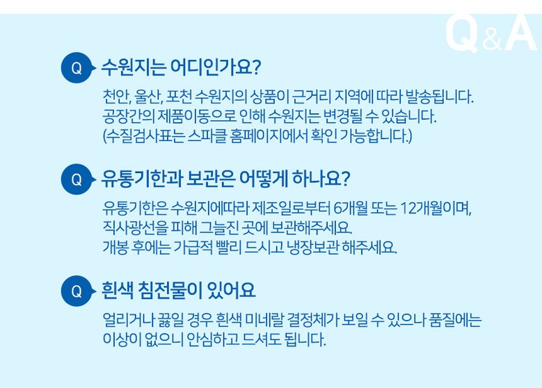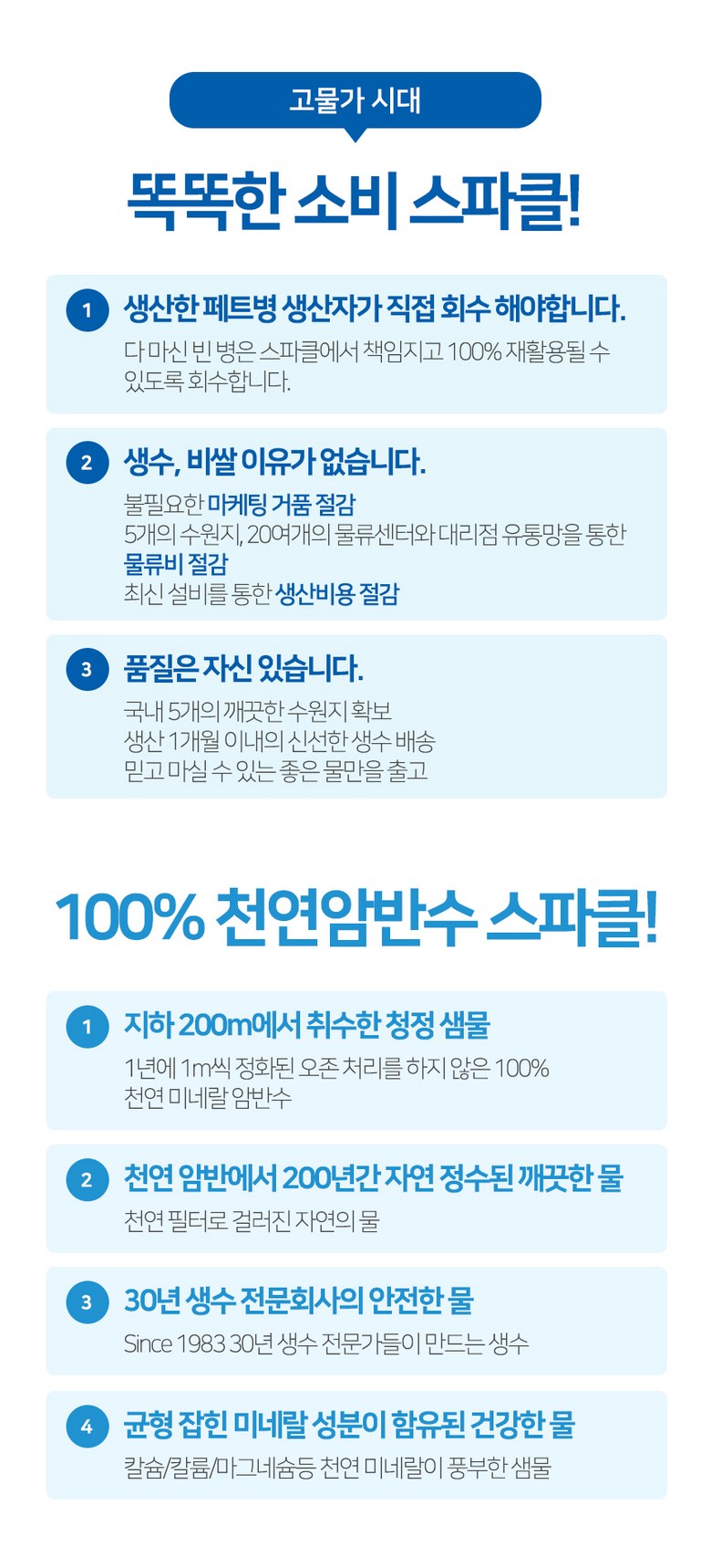 | 제품명 | 스파클생수 (영업허가번호: 제 2017-0077611 호, 제 2023-0101536 호) | 식품의 유형 | 먹는샘물 |