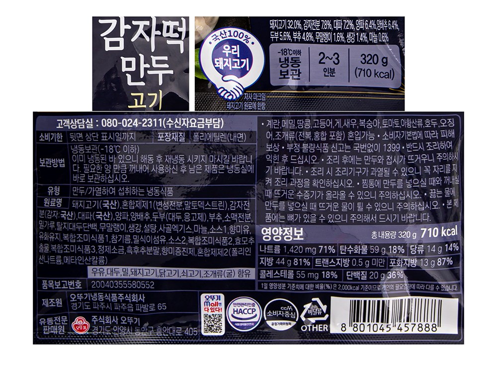 | 제품명 | X.O. 감자떡만두 고기 | 식품의 유형 | 컨텐츠 참조 |