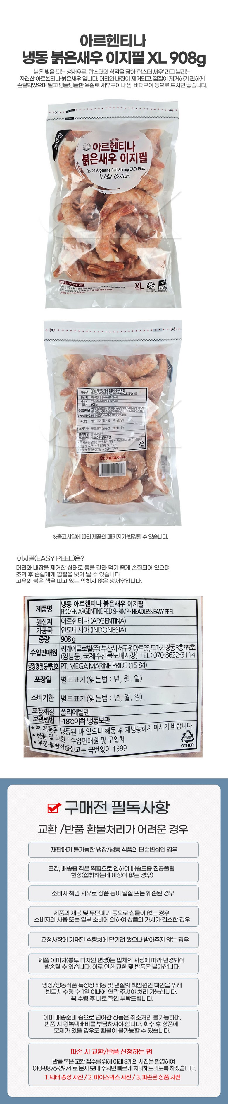 | 품목 또는 명칭 | 냉동붉은새우 | 포장단위별 내용물의 용량(중량),수량,크기 | 908g |