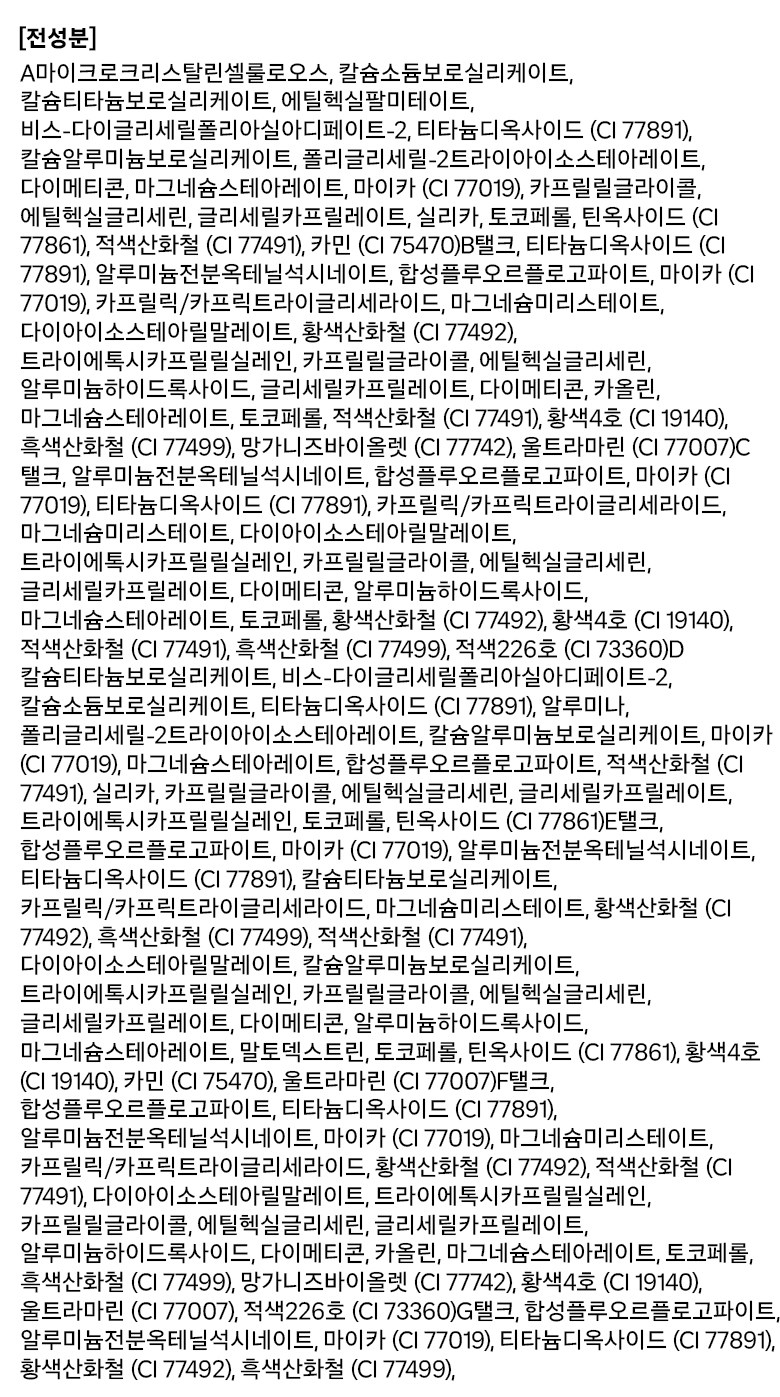 | 용량(중량) | 9.5g | 제품 주요 사양 | 모든 피부용 |