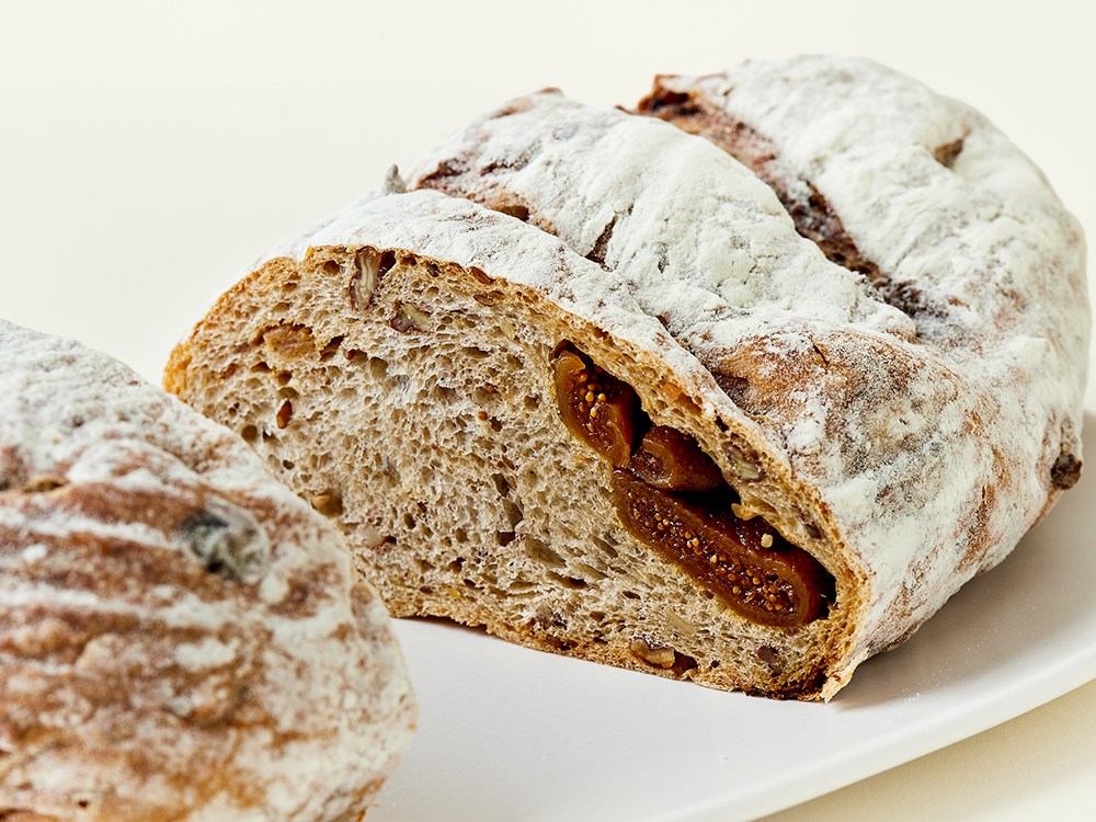 ‘캉파뉴’라고도 불리는 시골빵은 투박한 외관과 달리 속은 부드럽고 촉촉해 식감의 재미가 있어요. 씹을수록 구수하게 풍기는 향도 매력이죠. 지금 소개하는 시골빵은 럼에 숙성한 건조무화과가 쏙 들어차 있어요. 무화과의 새콤달콤함과 럼의 바닐라 향, 아몬드 향이 어우러져 이국적인 풍미를 선사한답니다. 빵 반죽에 이탈리아산 발효종인 ‘레비또마드레’를 사용해 한층 깊은 맛을 느낄 수 있어요.
