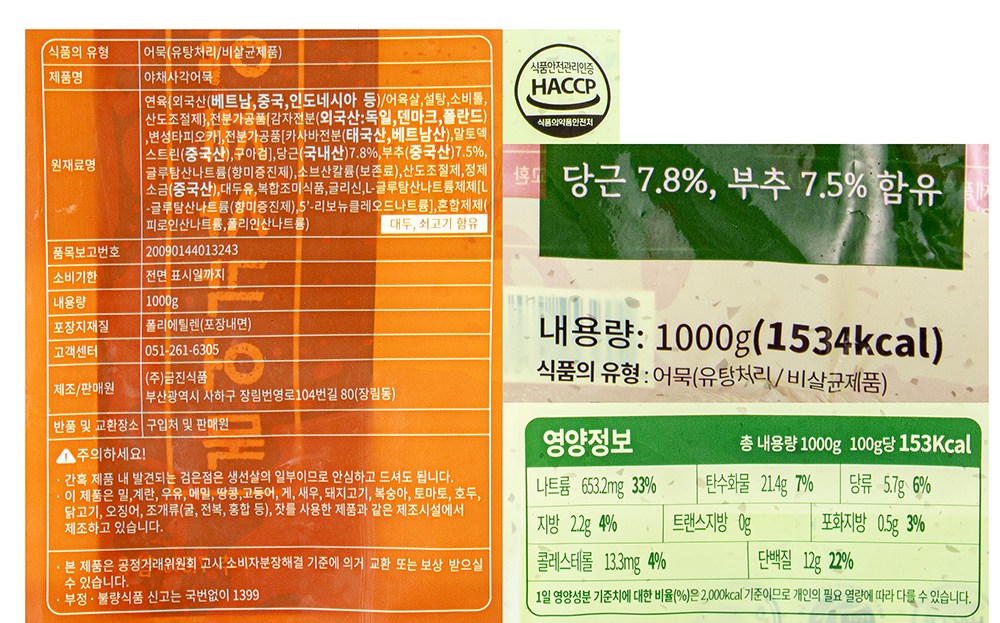 얇고 넓적한 모양의 야채 사각어묵