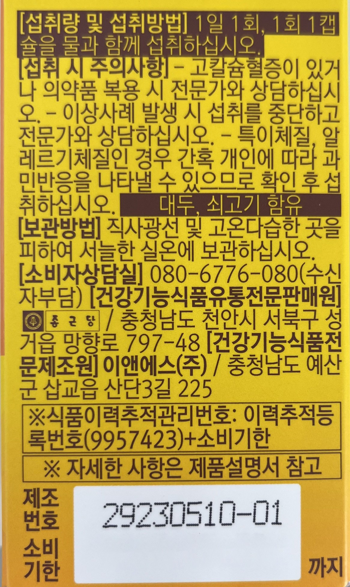 - 건강기능식품: 인증 있음