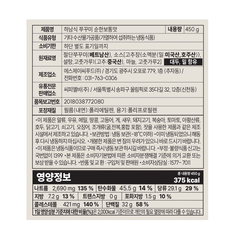 | 포장단위별 내용물의 용량(중량), 수량 | 450g x 2개 | 원재료명 및 함량 | 컨텐츠 참조 |