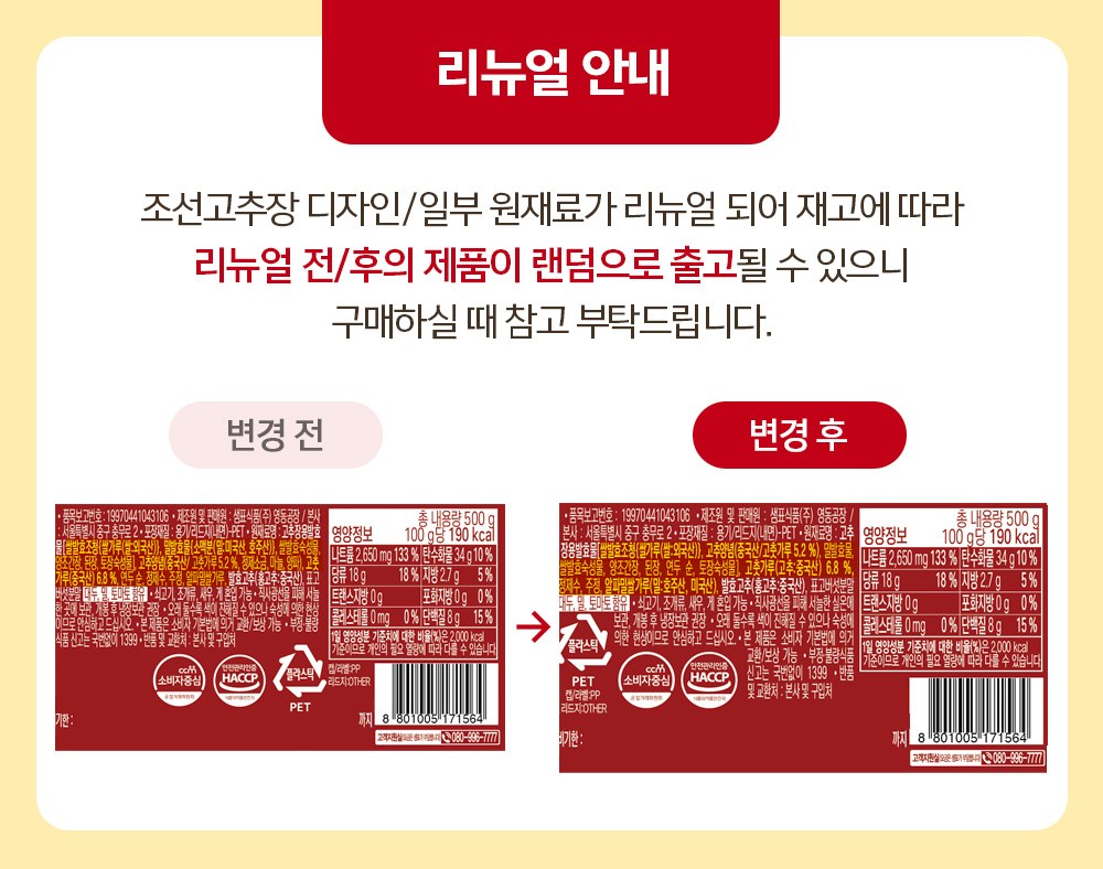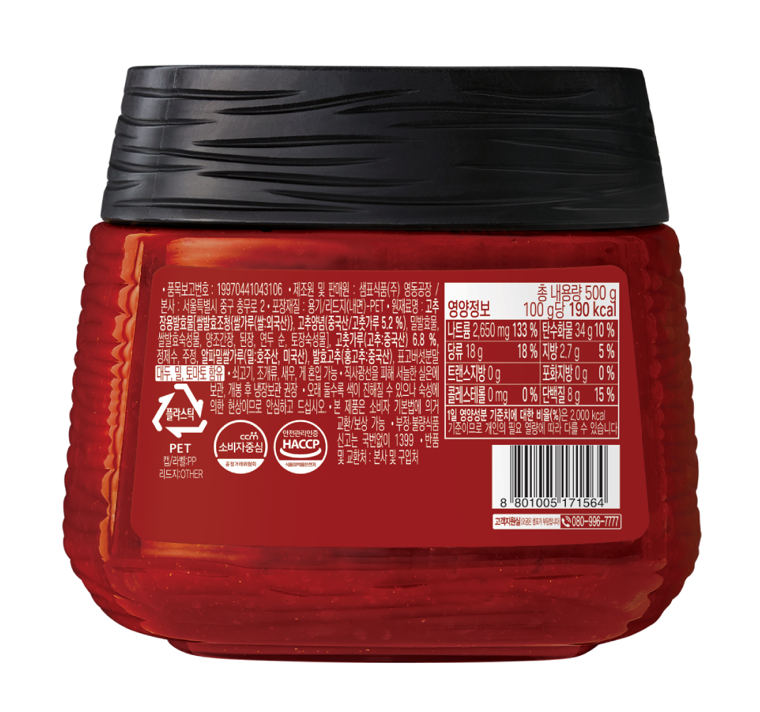 - 고추장 포장타입: 용기/통