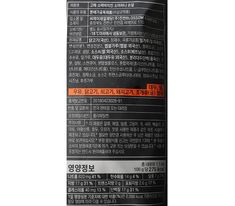 | 제품명 | 상품 상세페이지 참조 | 식품의 유형 | 상품 상세페이지 참조 |
