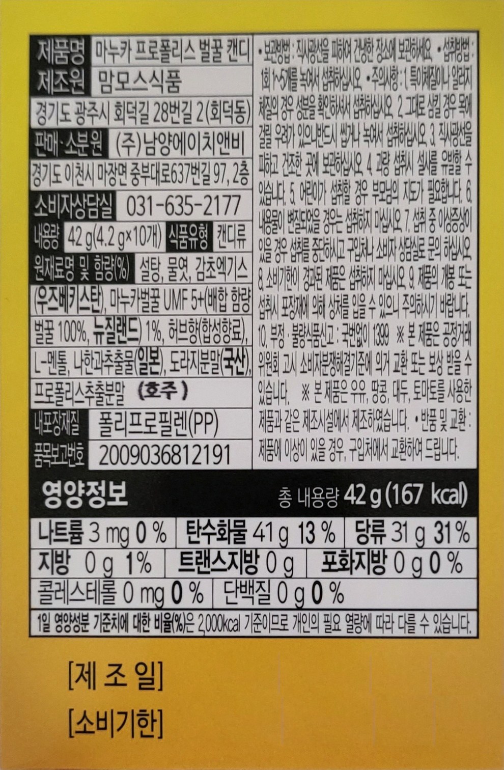 - 캔디류 맛/향: 민트/박하