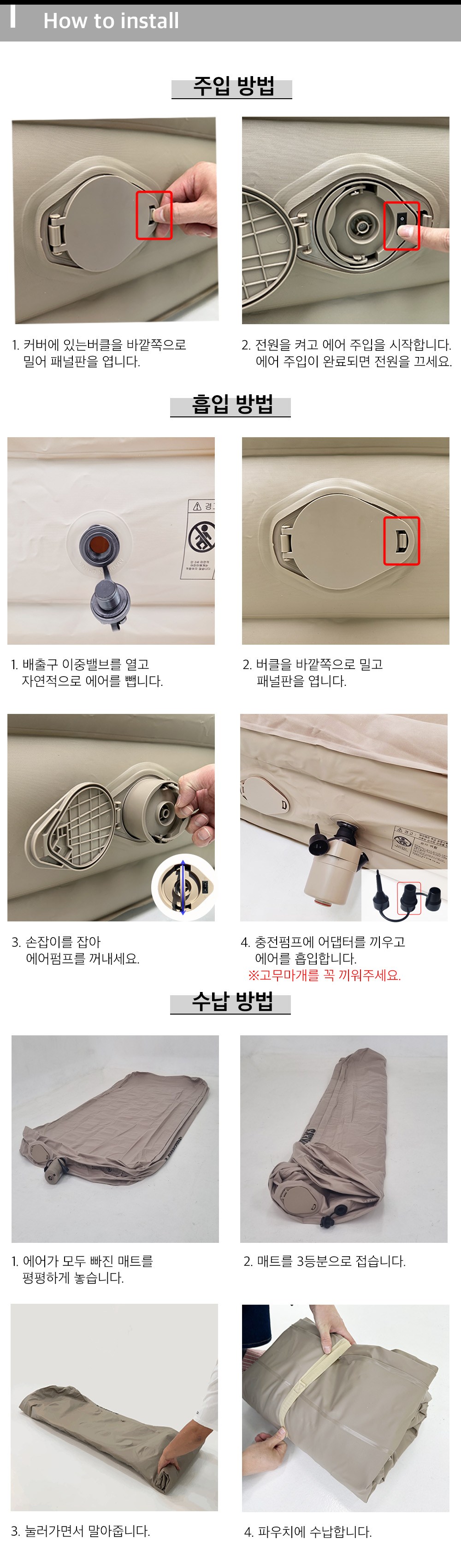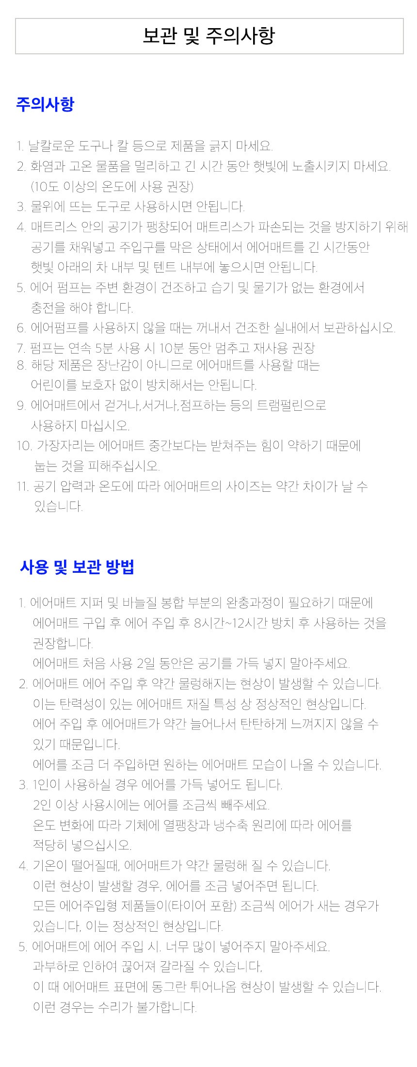 | 품명 및 모델명 | 루커스 에어매트 로얄 펌프 내장형 캠핑용 매트리스 | KC 인증정보 | 본품 : 해당없음, 내장베터리 : XU103102-23004A |